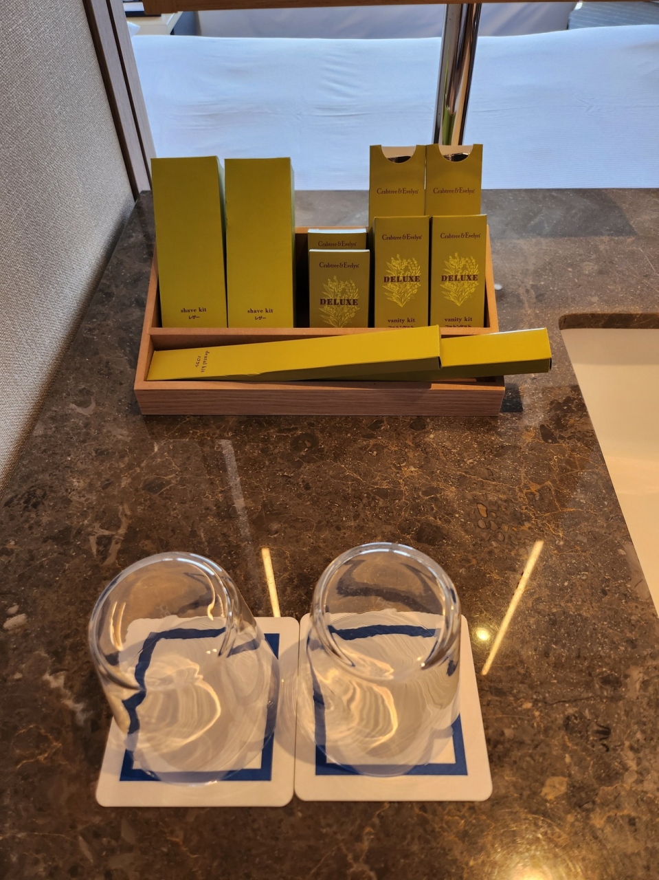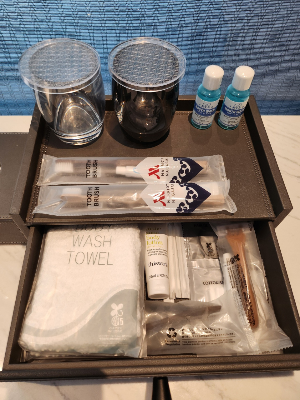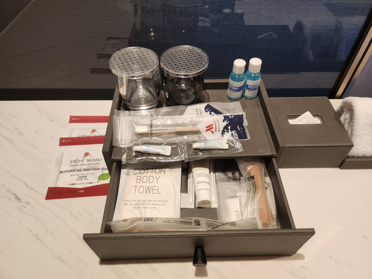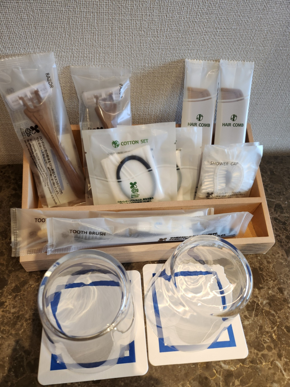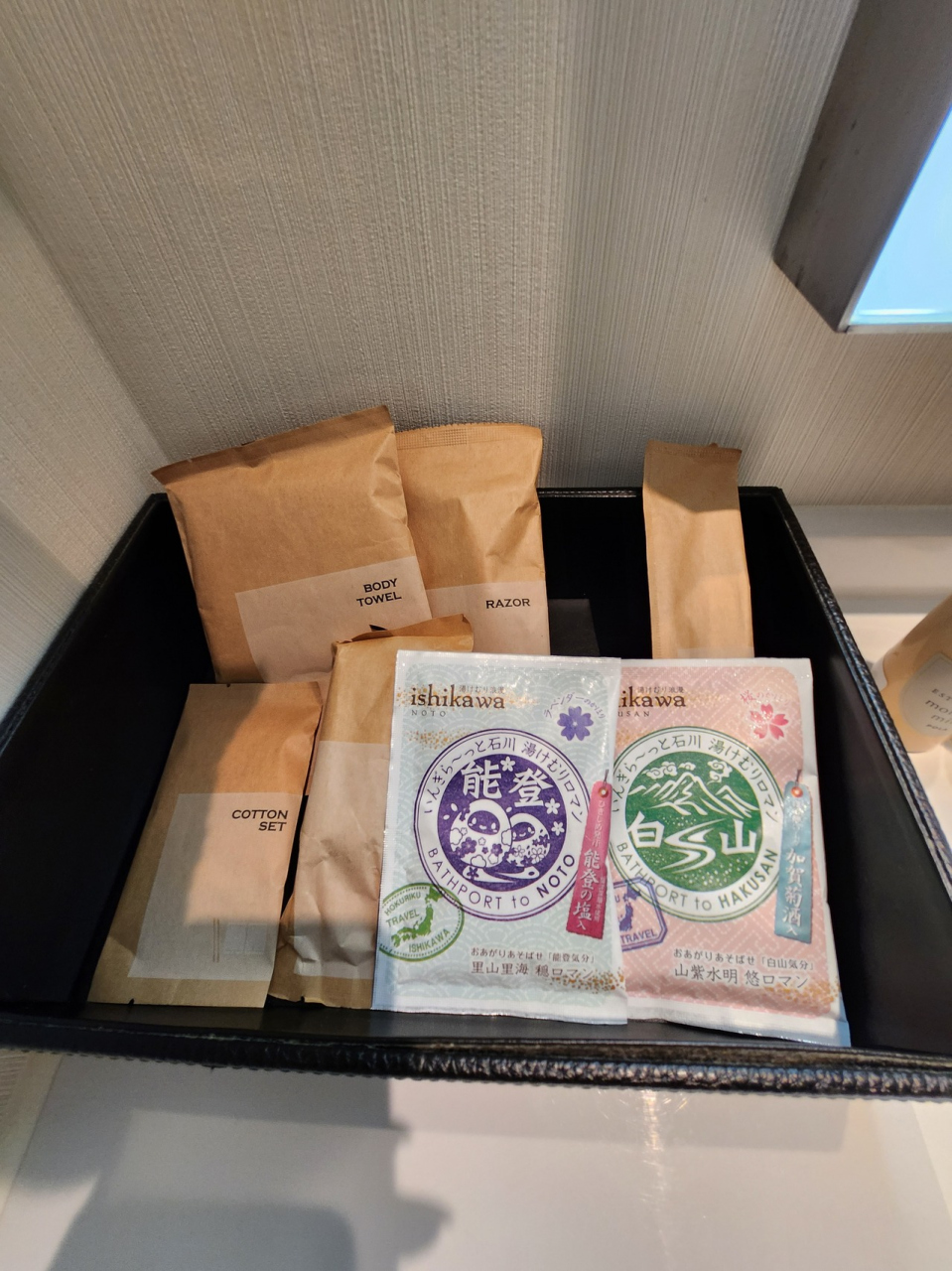 アメニティも豊富でした。化粧品関連あり、よい香りのバスソルトもあり。