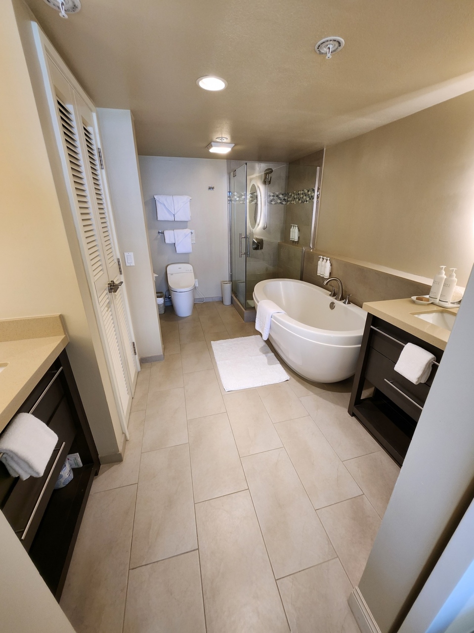 部屋は、パオアカラニタワーの32階のオーシャンビューで、眺めもよく、室内もとてもきれいでした。バス、トイレもきれいでした。