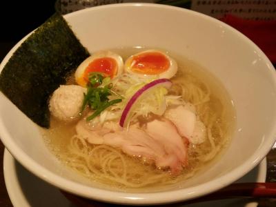あじ玉塩ラーメンを注文。種類の異なる鶏チャーシューと鶏だんごがのっています。スープも非常に美味しく、最後の一滴まで飲み干せます。コッテリラーメンの苦手な私にとっては、至高の逸品。