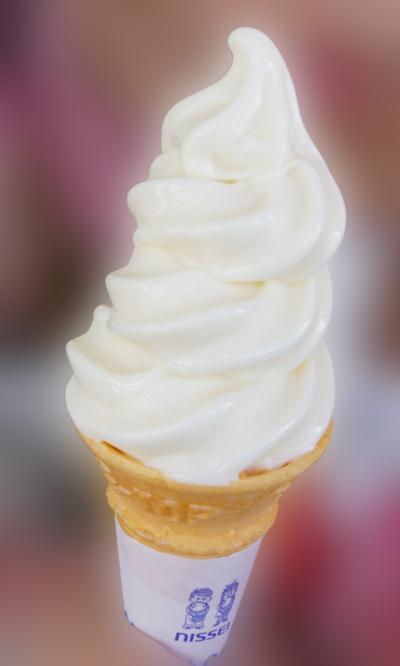 清里にある清泉寮の大人気ソフトクリームです。清泉寮には、このソフトクリームを売っている場所がジャージーハットとファームショップの二か所あります。大抵の観光客が、ジャージーハットの方へ行くので、ソフトクリーム屋さんは大行列ですが、ファームショップの方は、あまり知られてないのか、駐車場も空いていて、殆ど並ばずに買うことができました。ソフトクリーム目当てなら、こちらの方が断然早いのでお勧めです。
