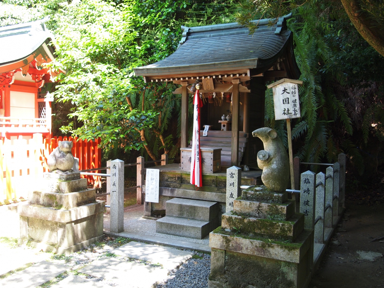京都の哲学の道の途中にある神社です。神社全体が緑の森に囲まれた非常に静かで気持ちの良い空間です。この神社は、末社の動物で有名です。日吉社の狛猿、愛宕社の狛鳶、大国社の狛鼠があります。狛鼠のいる神社は全国でもここだけらしく、非常に珍しいです。