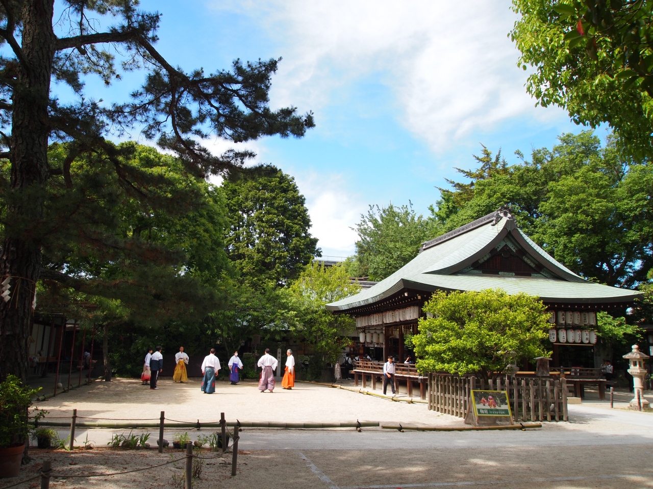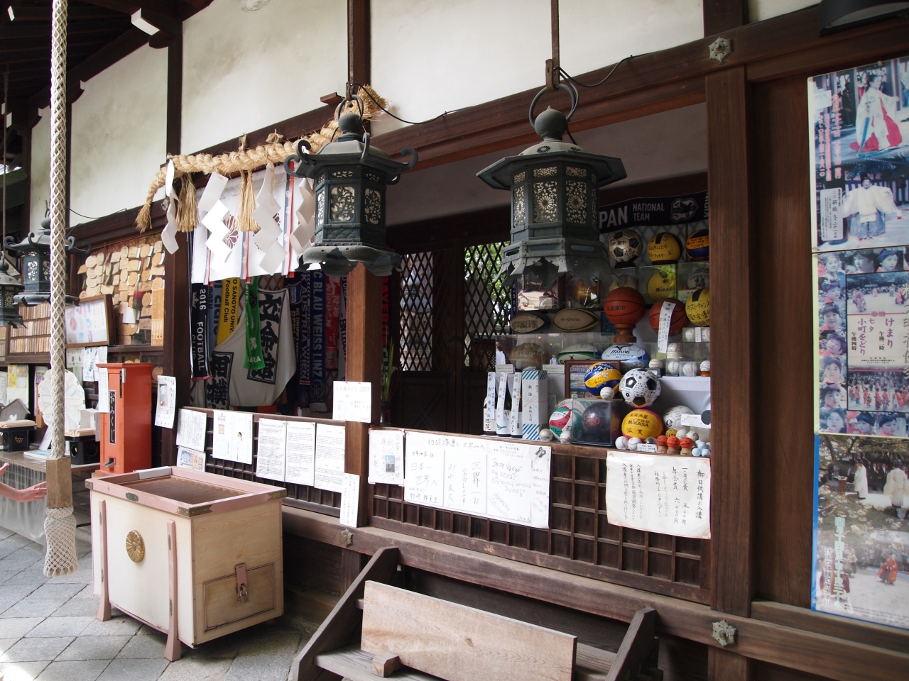 京都市上京区にある神社で、スポーツの守護神として有名です。スポーツ関連の参拝者が非常に多く、球技に使われる道具などが奉納されていました。境内には蹴鞠場があり、訪問した時にタイミング良く、丁度練習しているところを見学する事ができました。修学旅行生も多く参拝していました。