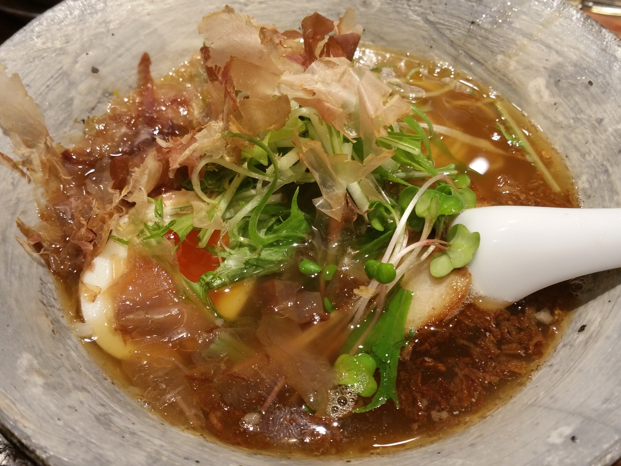 具材も、薄っぺらなチャーシューが2枚はいっているだけで、スープがちょっと濃すぎて飽きてしまい、後半はスープ割りで大量に薄めて麺を食べていました。- 旅行時期