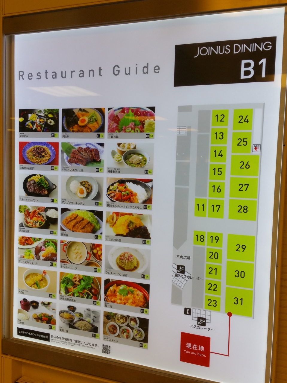 羽田空港第一ターミナルの保安エリア内にあるフードコートです。12番搭乗口前ターミナル中央付近にあり、南北どちらのウイングからでもアクセスできます。単純なファストフードではなく、全国各地のB級グルメを集めているのが特徴です。搭乗前に軽く食べるには良いです。座席がカウンターの外にもあり、天窓のある明るい空間なので、そちらで食べる事をオススメします。