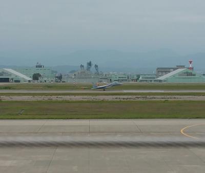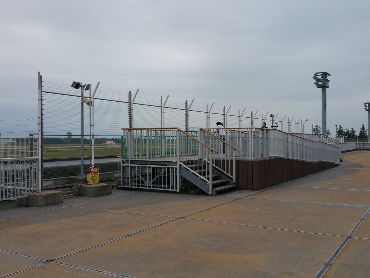 小松空港のターミナル屋上にある展望デッキです。保安検査上の右側にある階段から上って行きました。エレベータは見回した限りでは見つかりませんでした。数名の先客がいましたが、がらがらでした。航空自衛隊との共用なので、自衛隊機の離発着を見る事ができました。逆に旅客機は、殆どありません。最上階の室内部分にチャイルドプレイエリアがあります。