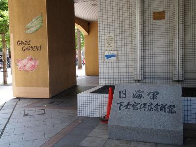 横須賀市にある、旧海軍下士官用の施設があった場所に建てられた記念碑です。横須賀芸術劇場の脇から、ドブ板通り方面に抜ける路にひっそりあります。気を付けないと殆ど見逃してしまうのではないでしょうか。周囲は特に何も無く、ビルの壁際にこの記念碑だけが建っています。下士官用の憩いの場として集う建物があった場所で現在は芸術劇場に生まれ変わっています。軍港めぐりの汐入ターミナルにこれを模した入り口やサロンなどがあります。