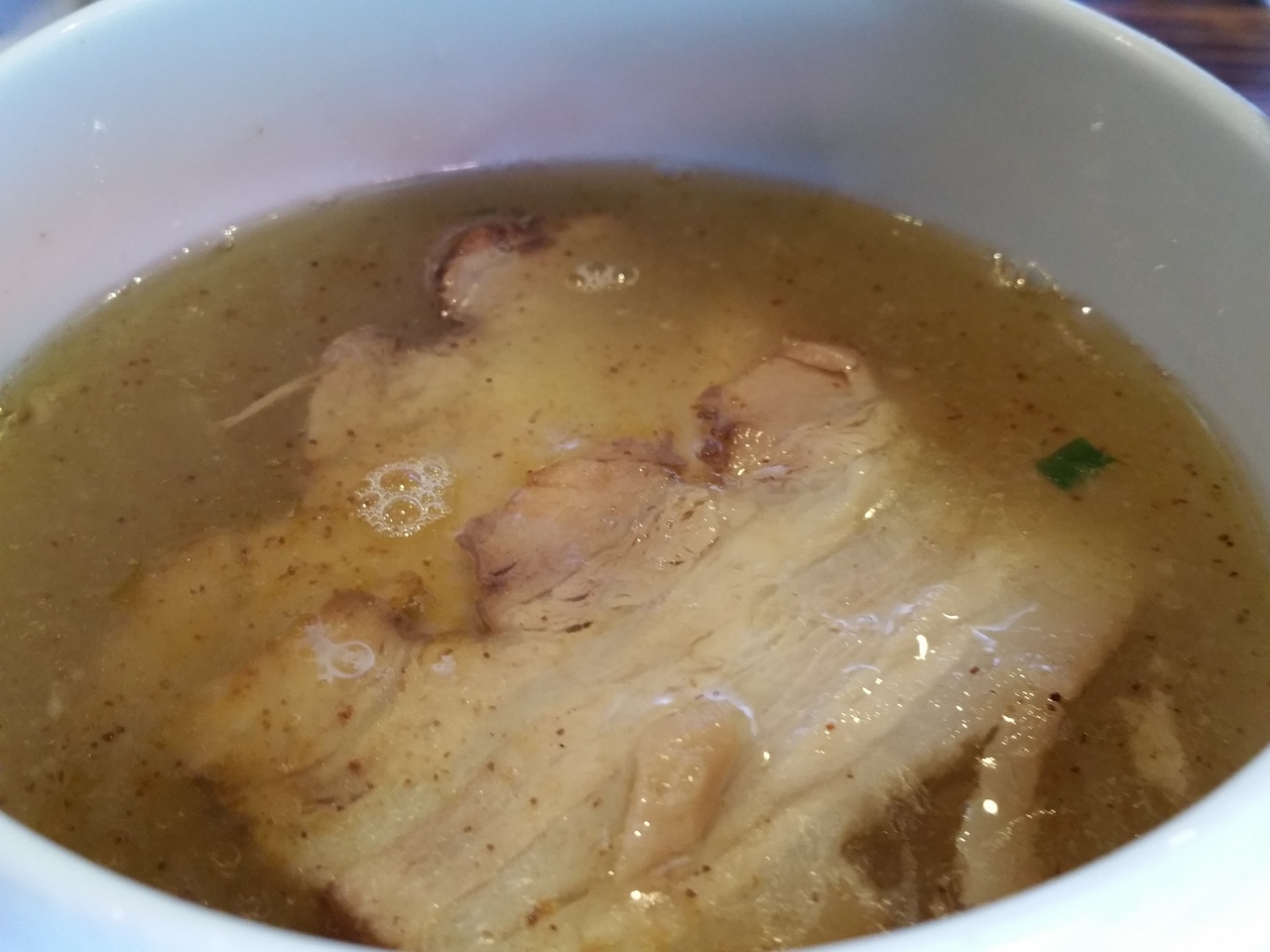 上大岡駅からは少し距離のある所にあるラーメン店。店舗面積はかなり狭くカウンターのみです。ザ・塩つけ麺を注文。つけ汁は器から熱々で、つけ麺の割にはスープは濃くなく、そのまま飲めてしまう位です。麺は独特の色をしていて、非常に美味しいです。鶏チャーシューは、柚子の香りが僅かにしていたり、海苔も香り味とも良く、具材の一品一品が丁寧に調理されているのが判ります。何度食べても飽きない味のラーメンだと思います。