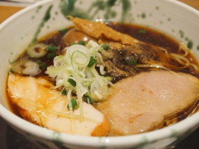 ららぽーと湘南のフードコートに入っているラーメン店。横浜の本店は人気のラーメン屋さんです。GW中日の平日に利用した為か、並んでいるお客さんはおらず、すんなり注文できました。らーめん醤油に味玉トッピングしました。スープは醤油の味がはっきり感じられる濃いめのスープで、一口飲むと止まらなくなるスープです。平麺との相性も良く、鶏チャーシューは非常に柔らかく仕上がっています。