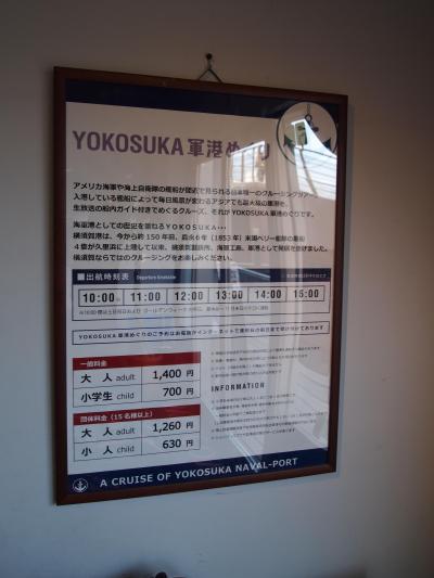 横須賀港を船で巡るクルーズです。軍港をめぐる為、アメリカ海軍や日本の自衛隊の艦船、潜水艦などを間近に見ることができます。1周約45分程度で一日数便出ています。クルーズ船はなかなかの人気で、休日は多くの人が並んでいます。ネットで乗船予約ができるので、行く日が決まっていればネット予約して行った方が良いです。船内は自由席なので、見晴らしの良いところは観客でぎゅーぎゅーになります。