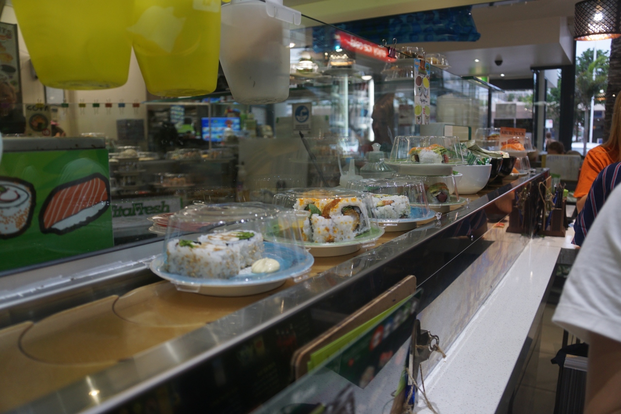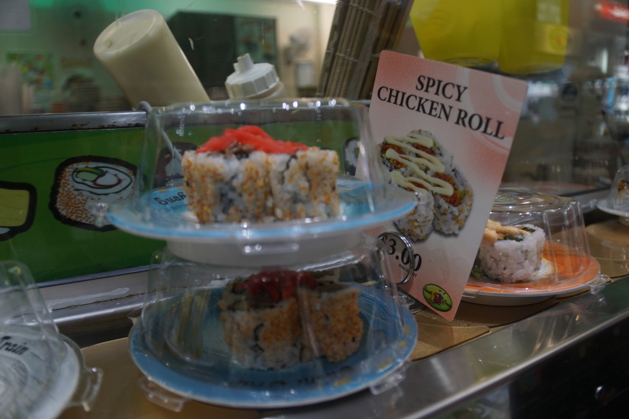 回転レーン隣のボックス席へ。テイクアウェイ用の