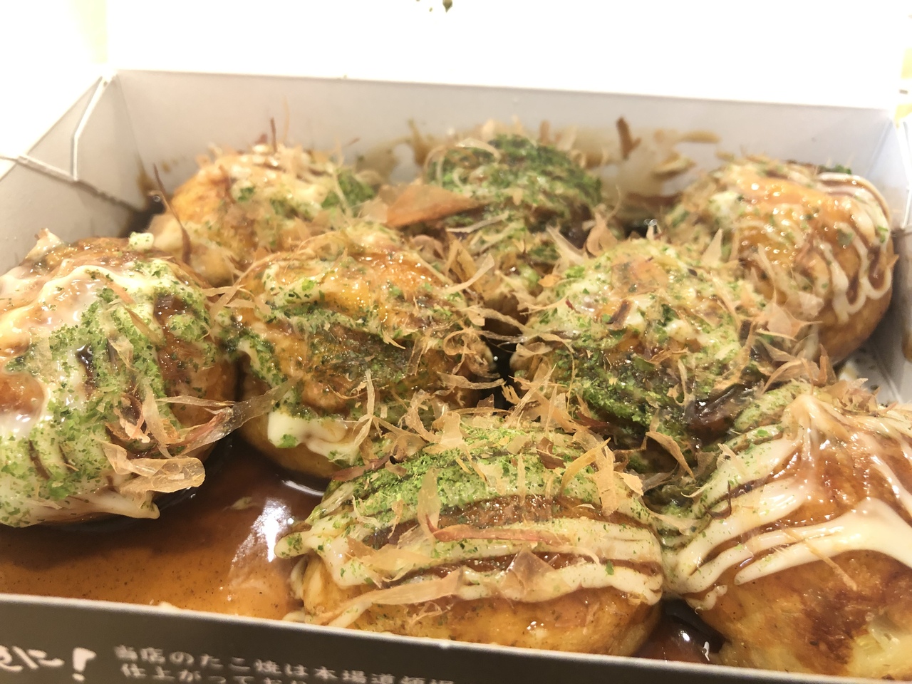 たこ焼きの上ではかつおぶしが激しくダンスをしていて食欲を増進させられます。
