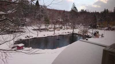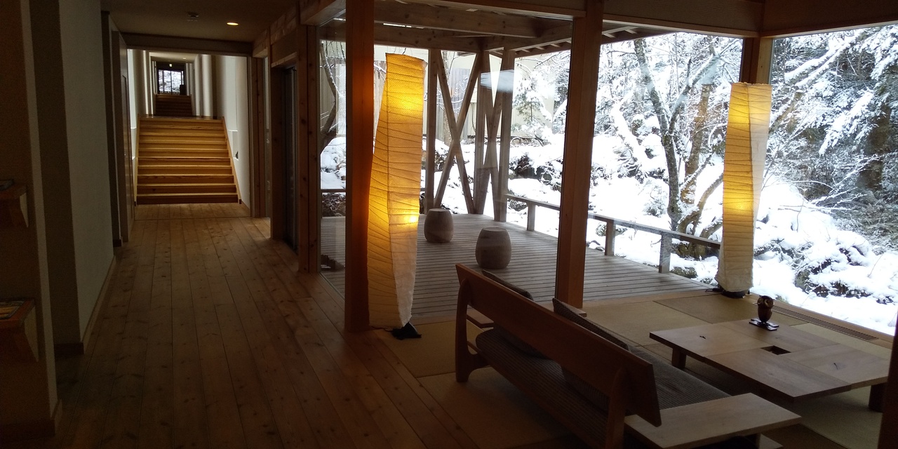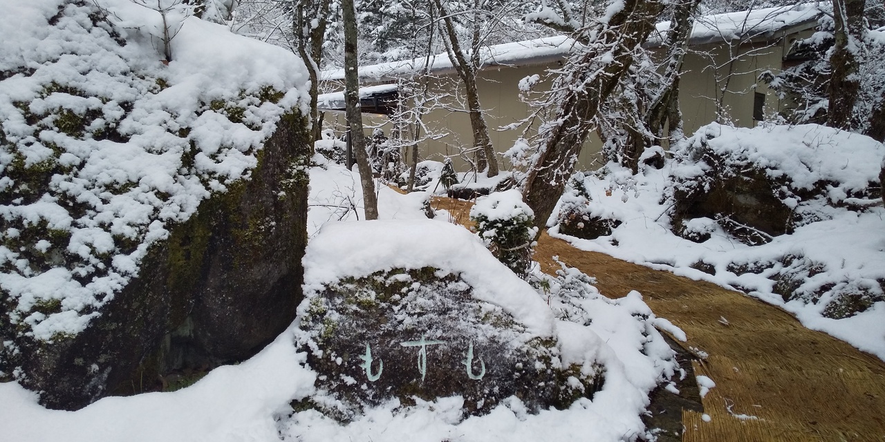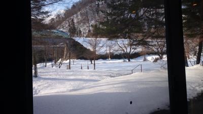 松本駅から車で約40分の山の中にあります。冬でもスタッドレスタイヤがあれば車で行けますが、私たちは松本駅から送迎車で向かいました。送迎車は、一日二便ほど出ており、私たちは15時15分松本駅前発の便に乗り、帰りも二便あり、私たちは11時宿発の送迎車に乗車しました。