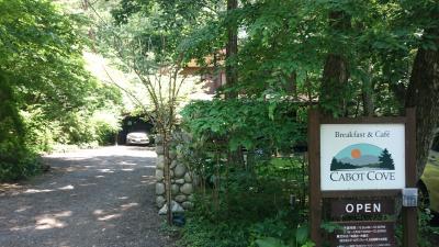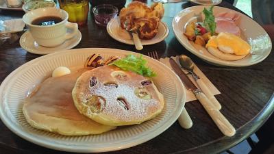 人気観光地・旧軽井沢から車で数分の信濃追分にある朝食メニューの豊富なカフェ。評判を聞いて、一度行ってみたかったお店です。超人気店のため、GWや夏休み期間は予約制となっていて、土日も混むみたいですが、月曜日の昼頃に行ったので無事に席を確保できました。甘くないシュー皮みたいなポップオーバーがお店の名物だそうですが、パンケーキもエッグベネディクトも美味。朝食メニューを注文した場合、飲み物は100円引きとなります。ベーコンまたはソーセージパティの付いたバナナとピーカンナッツのパンケーキ(1枚をプレーンに変更可能)が1200円、ホームフライ(じゃがいもの炒めた物)の付いたエッグベネディクトが1200円、ポップオーバーが400円でした。パンケーキは他にブルーベリーなどもありました。一皿ずつ注文した他にポップオーバーを半分こし、飲み物を付けて一人当たりの予算は2000円弱でした。店内でももちろん食べられますが、初夏などはテラスで食べるのも気持ちが良いと思います。朝食メインのお店のため、営業時間は6時30分から15時だそうですが、昼頃にはラストオーダーになる場合もあるみたいなので(私たちが行った日も12時半にはラストオーダーですと言われました)、昼頃には到着した方が良いかと思います。