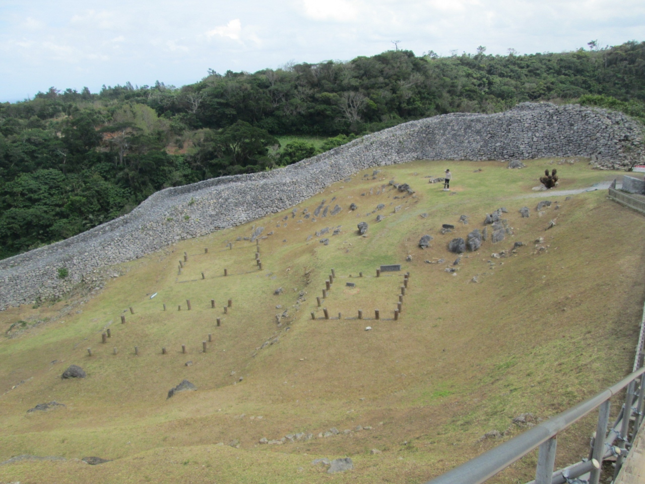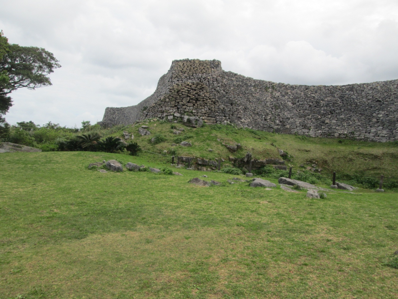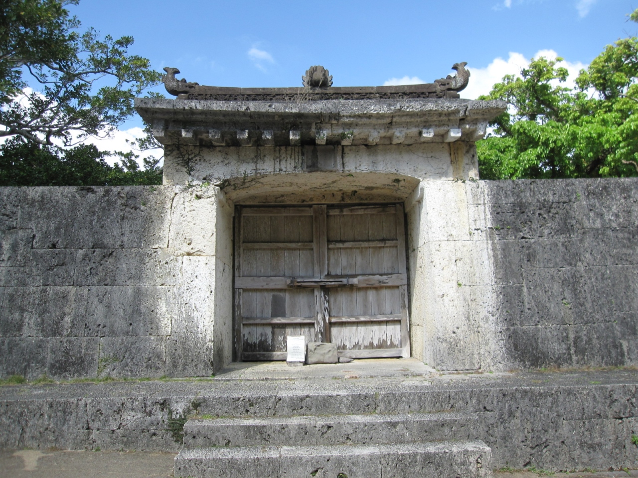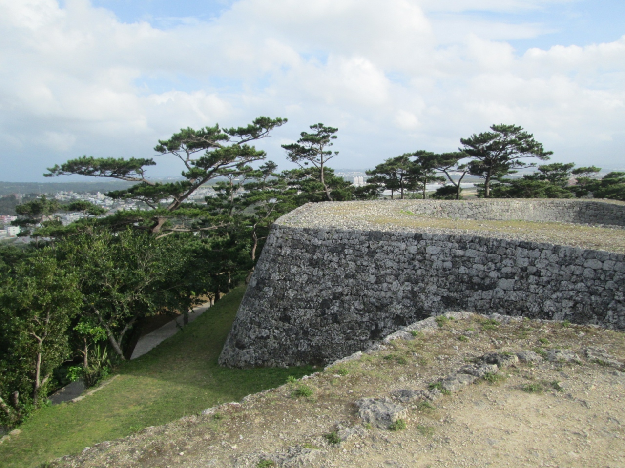 琉球王国が日本、中国、東南アジア諸国との交易で繁栄した14世紀初頭に読谷山の按司護佐丸(ごさまる)が築城したとされ、二つの郭で構成される城壁には、楔石を用いたアーチの石門が造られ、重厚で美しい曲線が生かされているのが特徴とか。