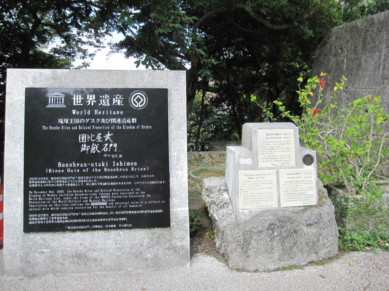 守礼門と首里城歓会門との間にある首里城外郭の園比屋武御嶽石門。