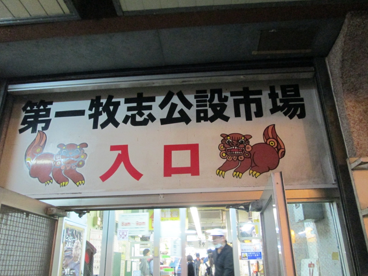 那覇市国際通りの観光案内所で夕食の場所探しをしたところ、職員のお婆ちゃんから通りの南側にある第一牧志公設市場の2階の食堂が安くて美味しいとの情報をゲット、即行ってみました。