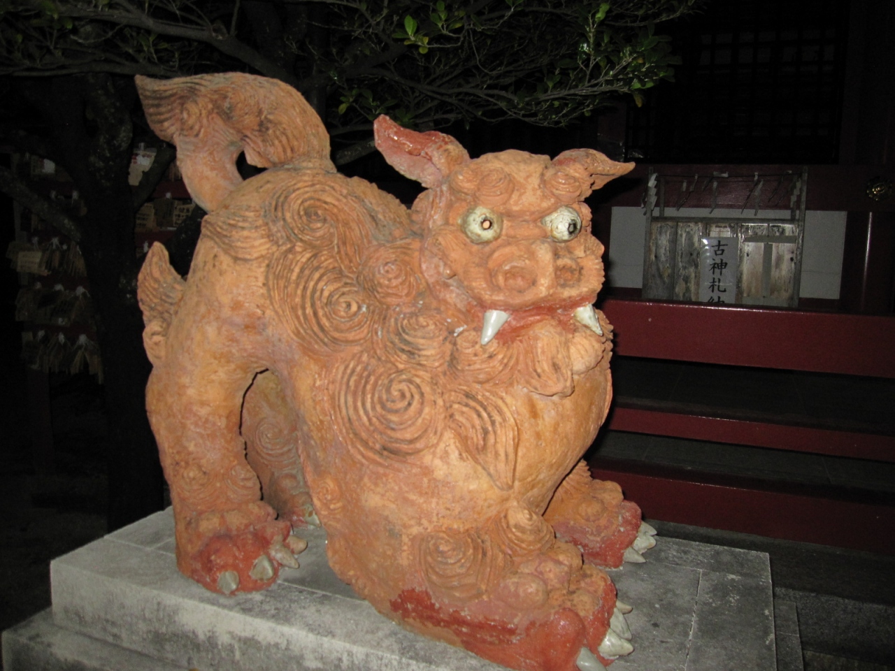 この地は古来よりニライカナイ(海の彼方にある死者の国とこの世の中間の神の世界)への祈りの聖地であり、神社は王府から特別の扱いを受けたという琉球八社の最高位に位置する、由緒ある神社とのことで、御祭神は伊弉冉尊(いざなみのみこと)、速玉男尊(はやたまをのみこと)、事解男尊(ことさかをのみこと)。