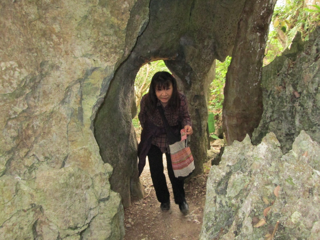 この石門は、国王が外出するときに安全祈願をした御嶽(うたき)の礼拝所で、形は門になっているが人が通る門ではなく、いわば神への「礼拝の門」ともいうべき場所であとのことで、現実的に門の背後を見ても何もありませんでした。