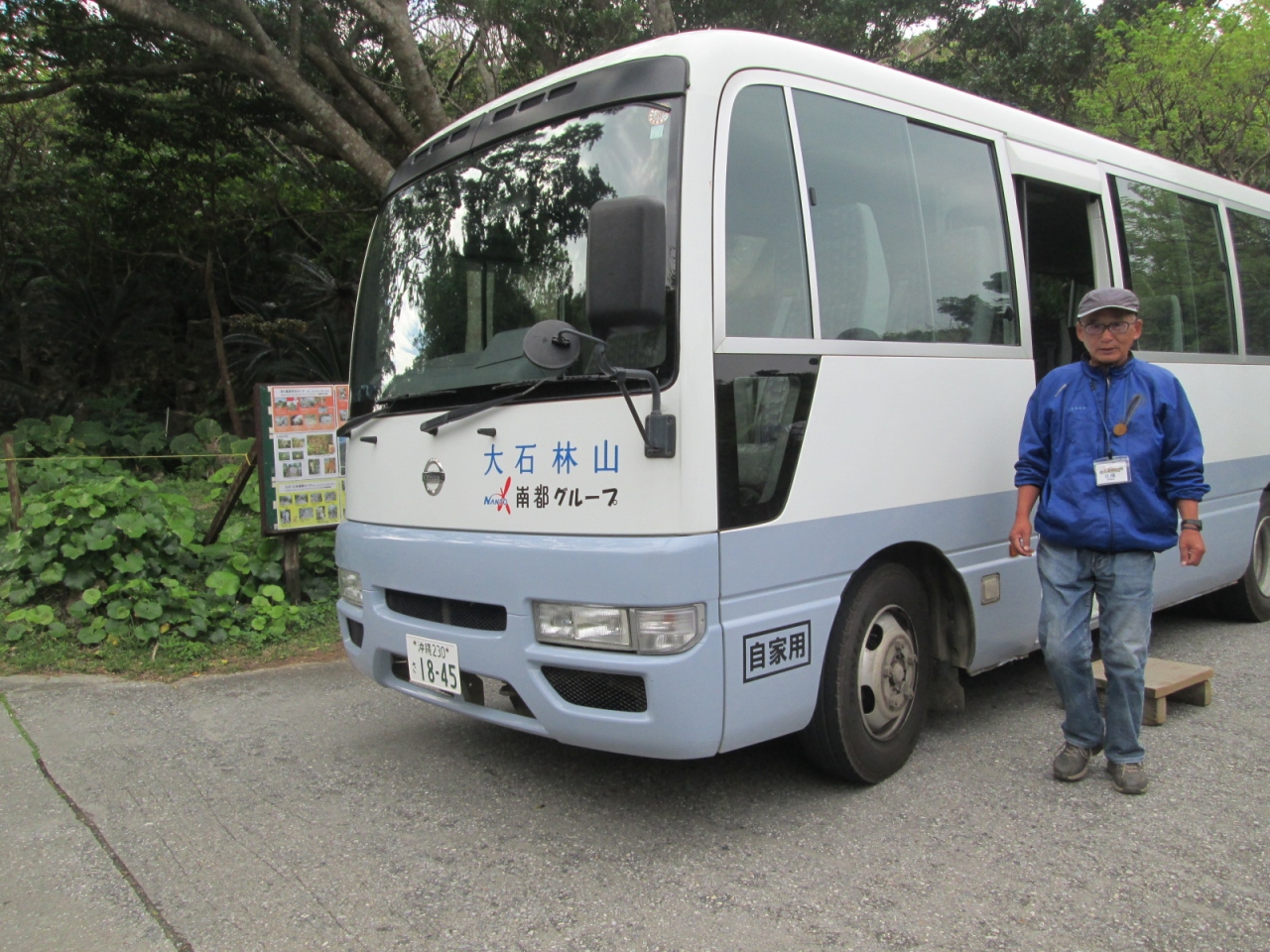 大石林山は、4つの散策コースが琉球神話の杜に設けられ、券売所からマイクロバスで散策スタート地点の精気小屋に向かいます。