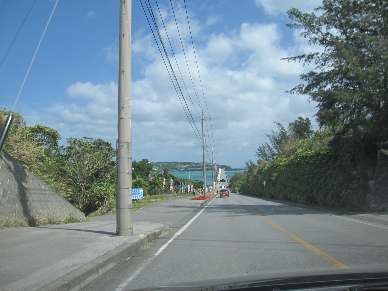 橋としては2番目に長い橋で、橋の両側にはエメラルドグリーンの海が広がる絶景のドライブコース。