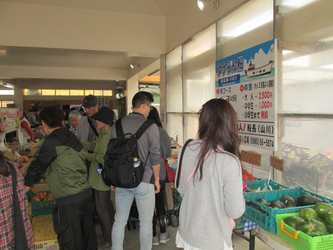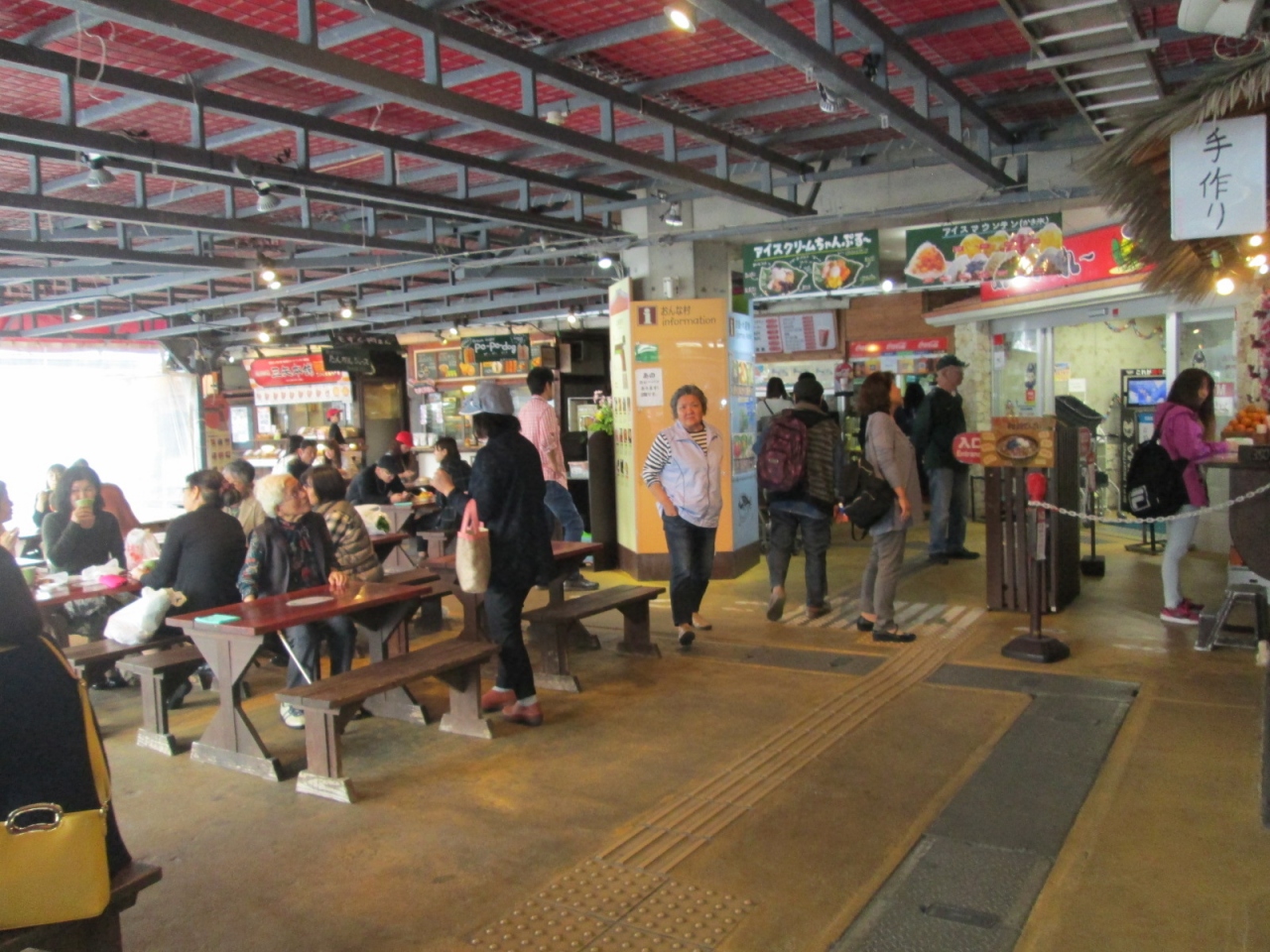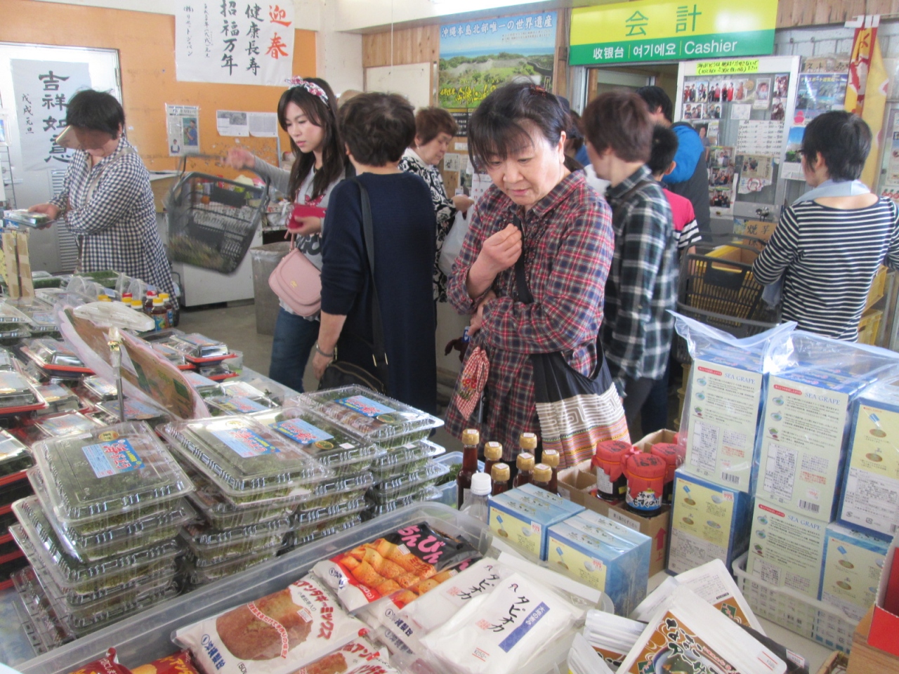 海ぶどうの試食があったり、特産品やお土産が並び、観光バスで訪れた中国語が飛び交う観光客でにぎわっていました。