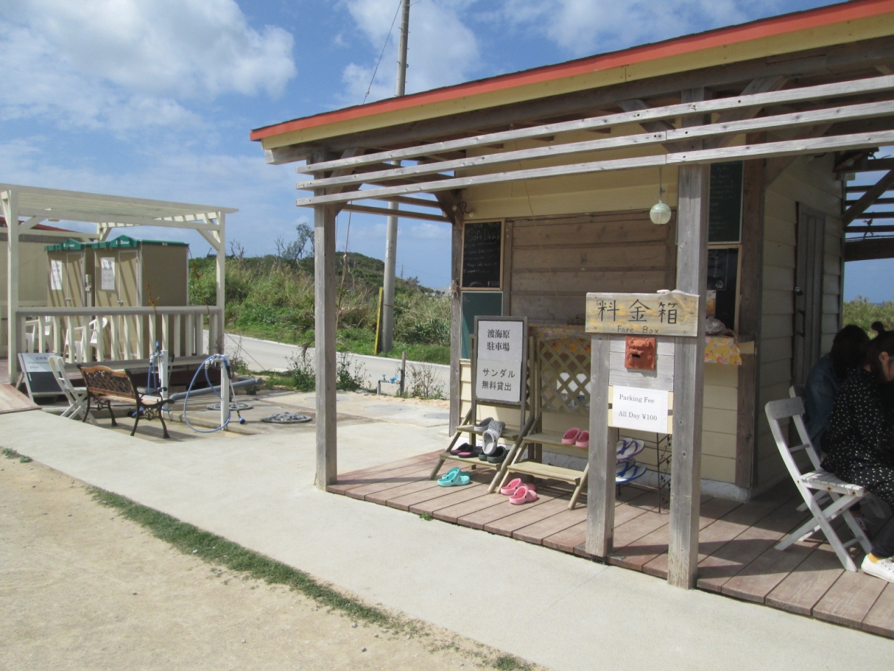 私は次の看板の駐車場を利用し、無人の小屋の料金箱に100円を投入、小屋には無償で借りられるビーチサンダルが置かれ、足洗場も用意されており、私達は利用しましたが、是非これらを利用した方が賢明かと思います。