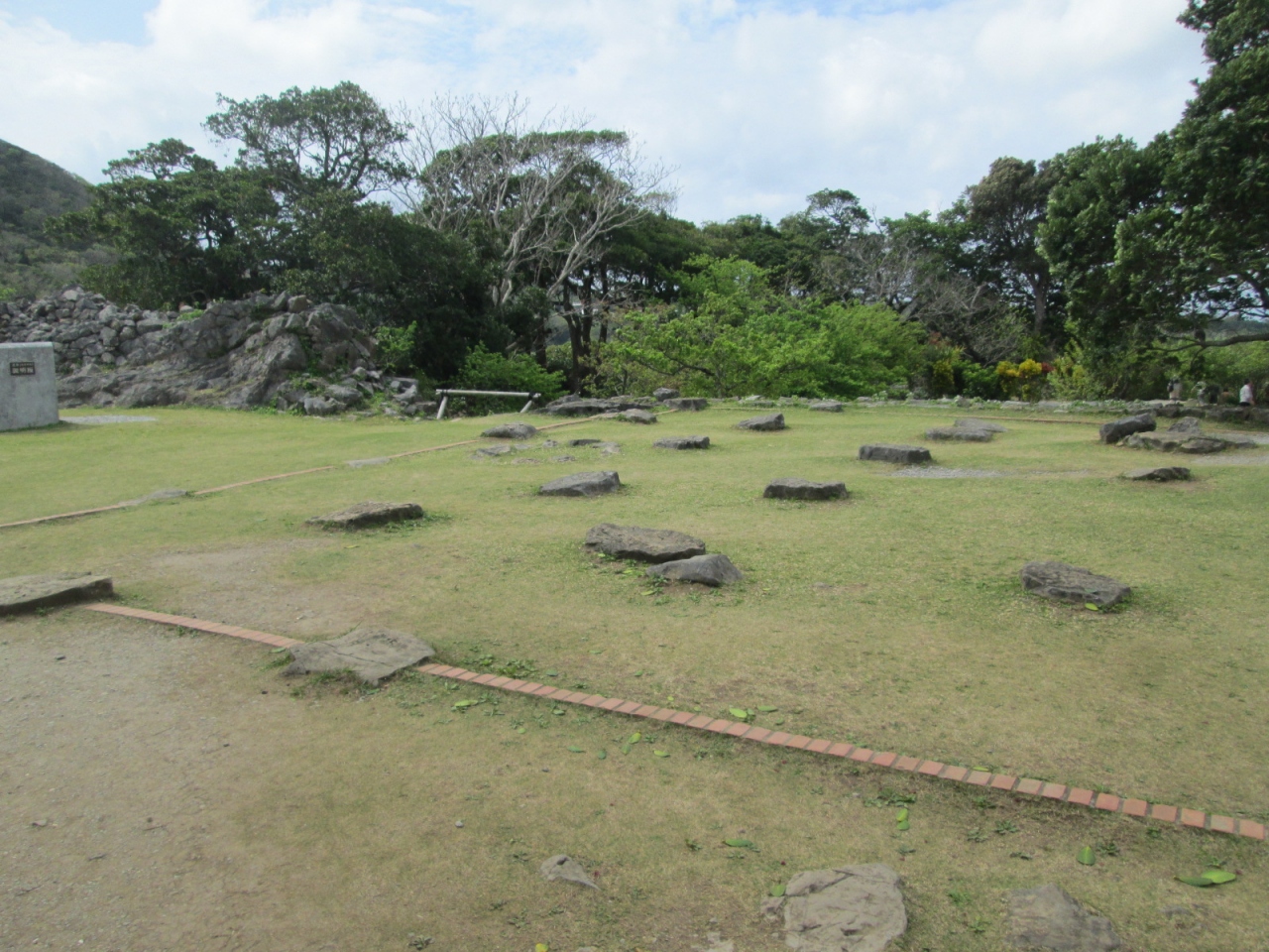 建造物の外は、外庭と中庭が石壁で仕切られ、中庭には珊瑚の破片が敷き詰められ、沖縄戦で東室・西室が破壊され、復元されたものだそうです。