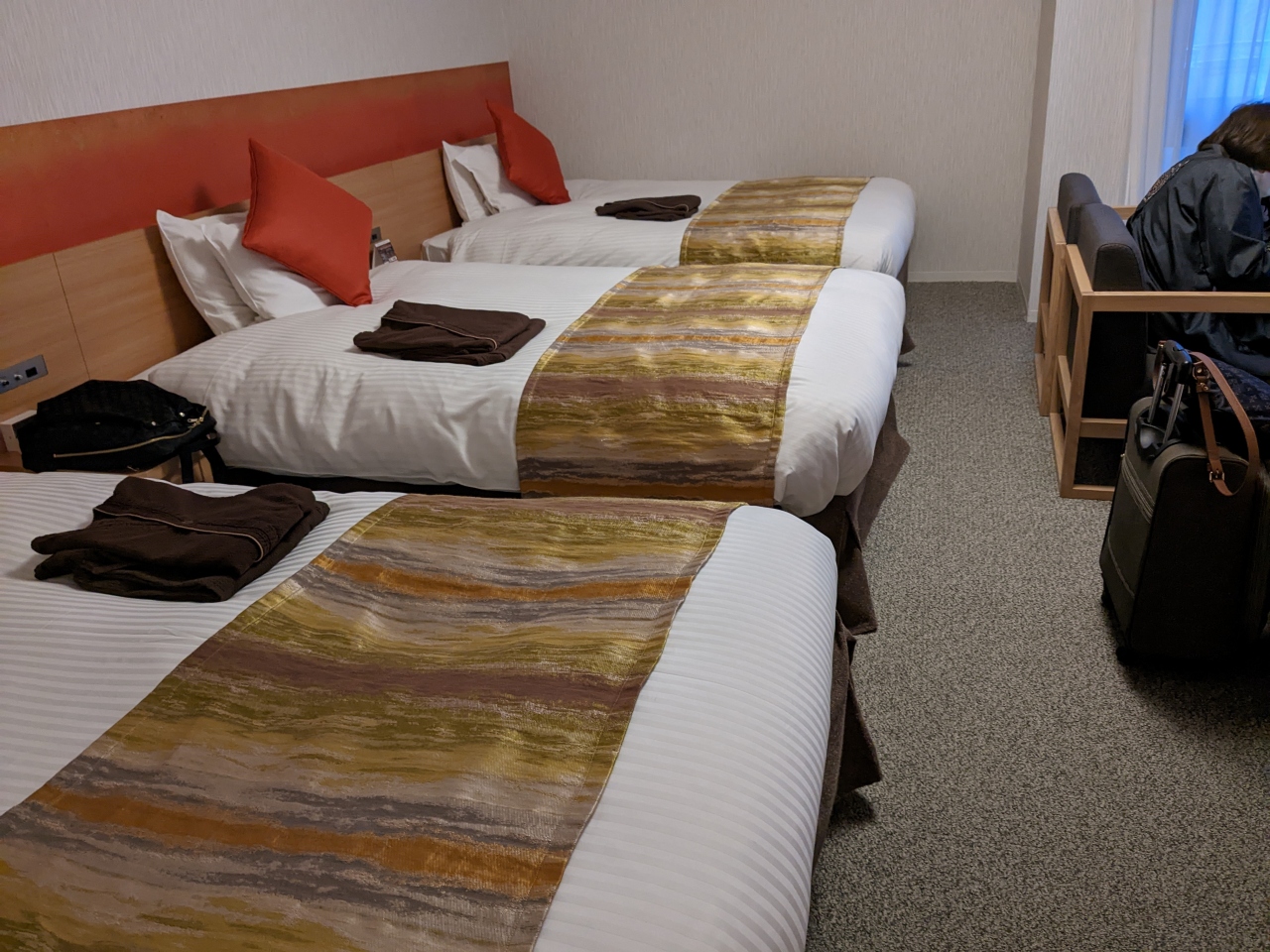 スタッフの笑顔で心地よかったのですが、家内曰く大浴場は想像以上に狭く、更衣室のロッカーも空くのを待ち、やっと浴場の洗い場に入っても混雑していて裸で順番待ちの状態だったとの事でした。