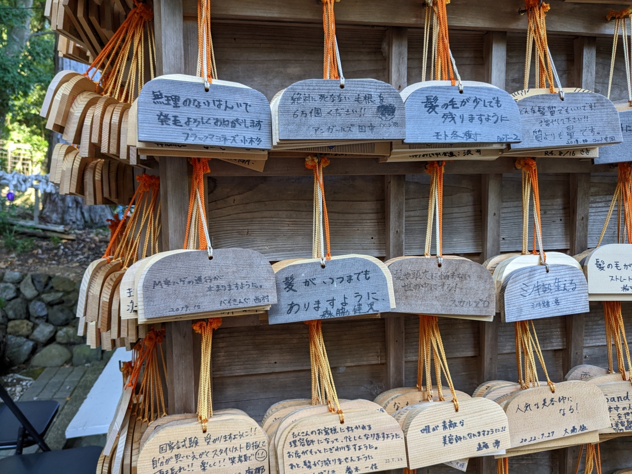 神社に掛けられている絵馬の中に、薄毛をネタにしている芸能人の名前も見つけました。- 旅行時期