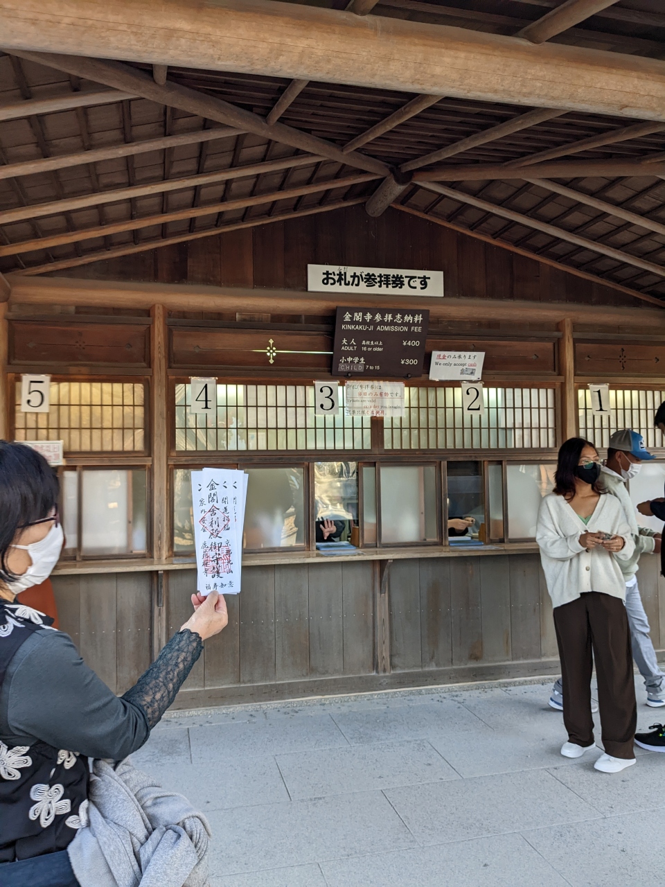 入口で入場料を支払うと、入場券が金閣寺の御札になっているので、ありがたく土産
