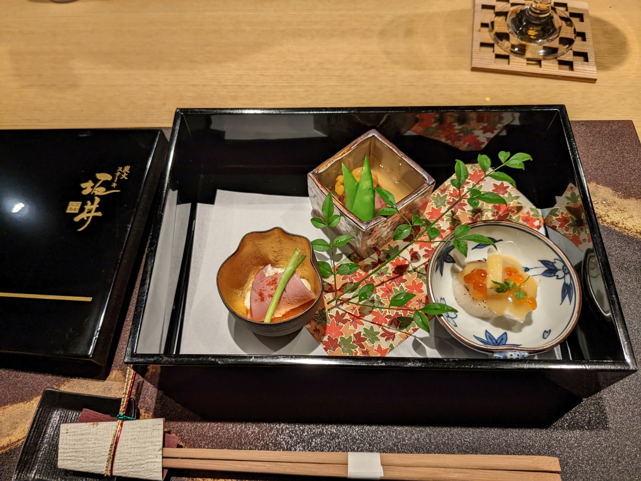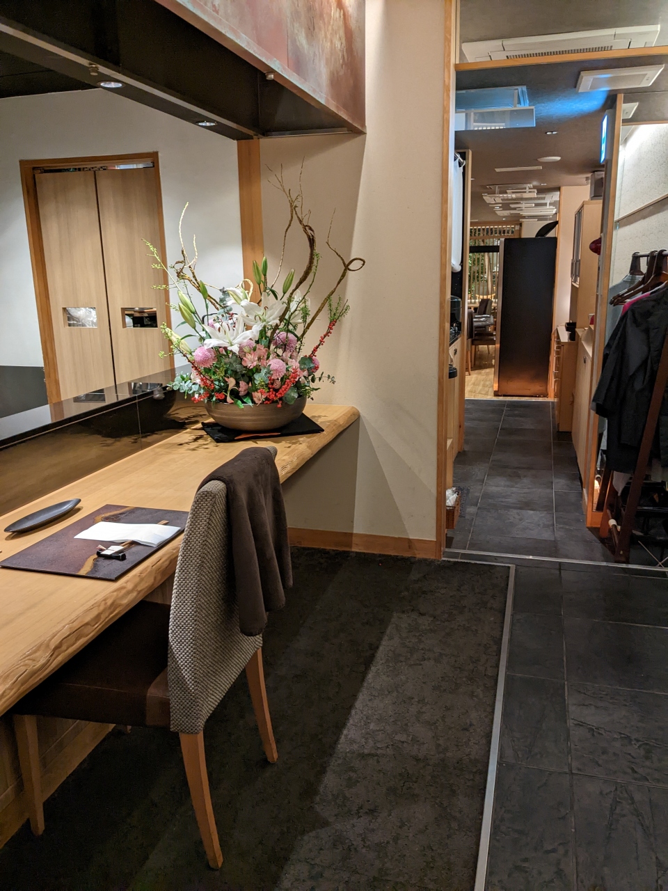 宿泊した三井ガーデンホテル京都三条の二軒ほど隣にあり高級感が漂ってましたが、清水の舞台から飛び降りる気持ちで、暖簾をくぐりました。