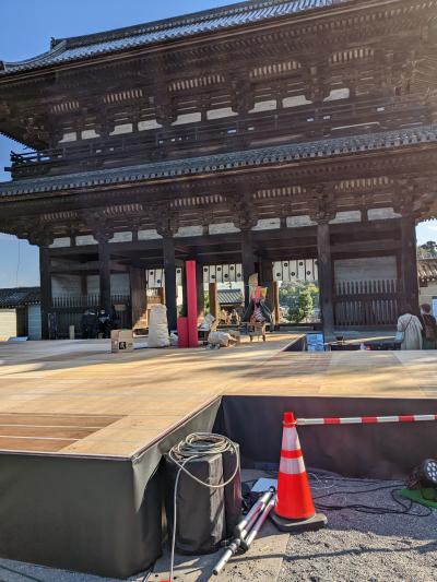 紅葉が始まった世界遺産の「仁和寺」を満喫しようと、仁王門をくぐると中門の途中位まで、大舞台らしき物を大人数で組み立てていて、通る場所も制限され、情緒が台無しでした。