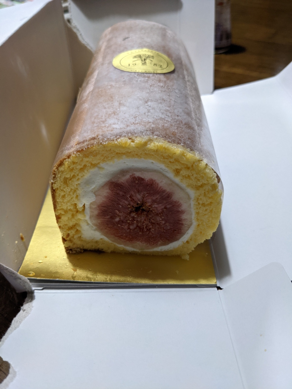 名鉄グランドホテル11階が第1会場で、入場すぐにシエ・コーベのケーキが販売されていて、妻は「品切れとなるといけない」と言いながら即、いちじくのロールケーキを買っていました。