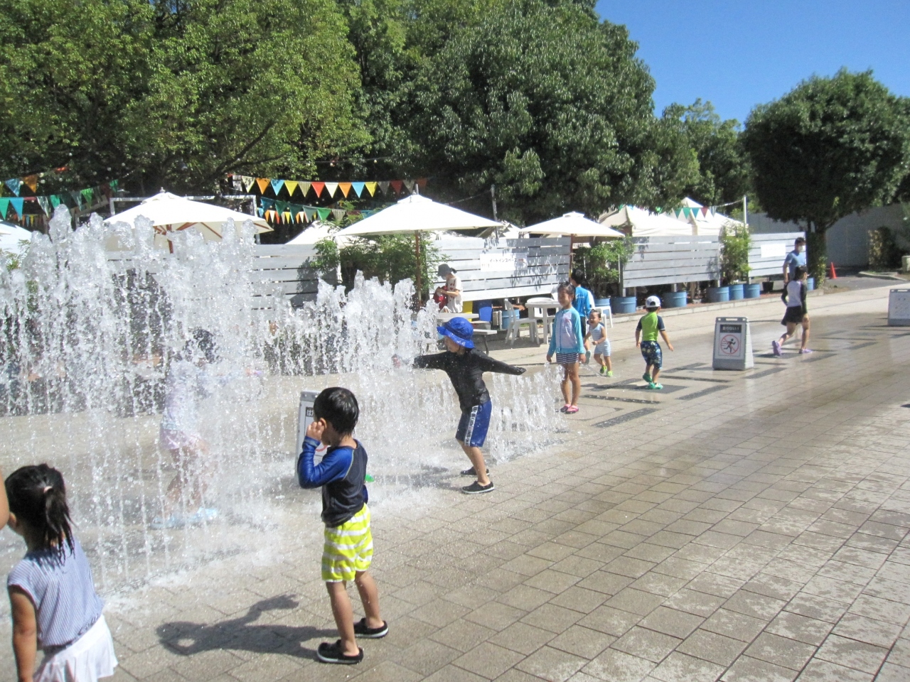 オアシスパーク内の水遊びが出来るコーナーでは、利用慣れした水着姿の子供達ばかりで、子供の遊具が多数ありました。