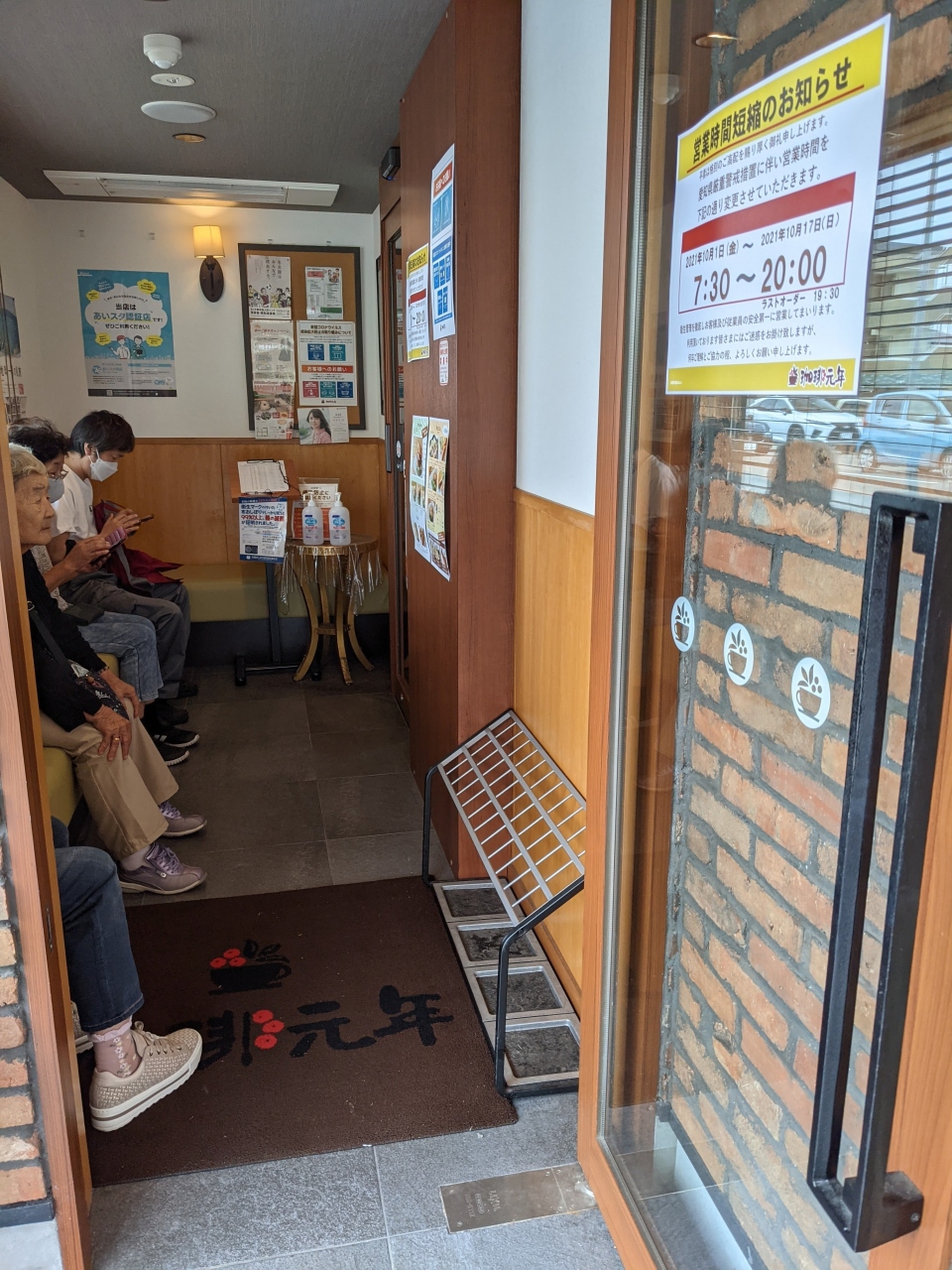 やっとのことで駐車し、店内の入口でアルコール消毒をして名前を記入し、待合いの椅子で待つこと10分程で、額の体温を計って貰って席に案内して頂きました。