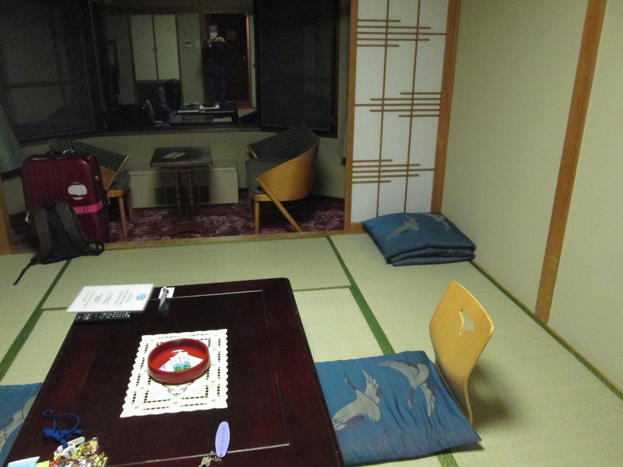 大江本家には新しい施設の飛燕閣と古い聴水閣があり、指定された部屋は、安価と思われる聴水閣の八畳和室でした。
