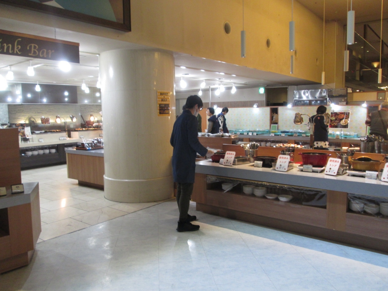新コロナ対策で3階の大広間の座席が少なくなっていて、前回までは机の上にはポットや湯飲み等おいてありましたがなくなり、専門店が営業しはているものの、ケース内に並ぶ色々な料理を選択して精算するシステムの和風カフェテリアは閉められてました。