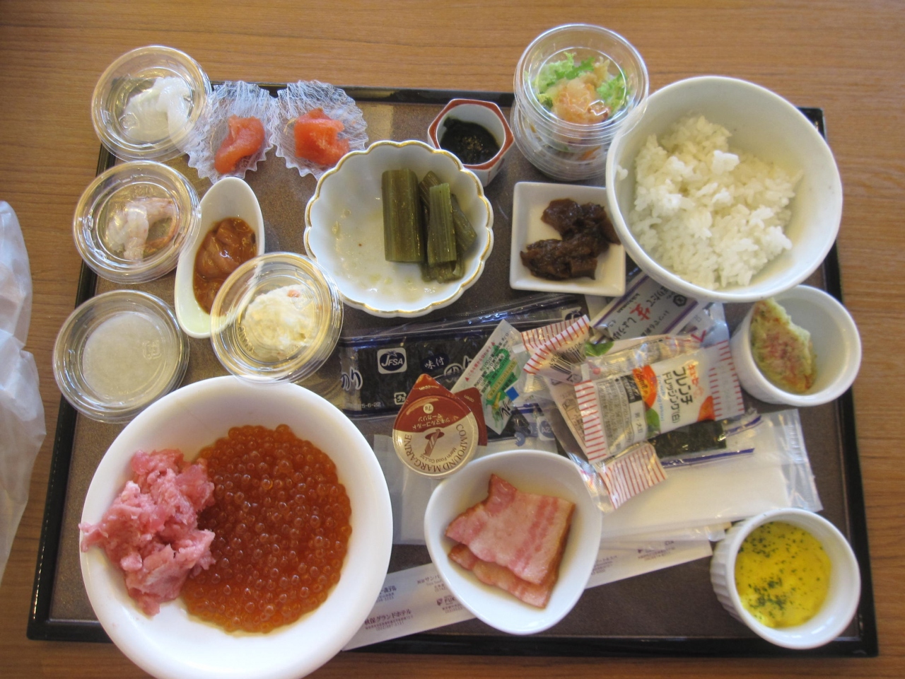 また朝食は、、自身の好みの具材で作れる海鮮丼が人気で、その種類はイクラ、イカ、甘エビ、山芋、ネギトロ、たらこ、じゃこ等- 旅行時期