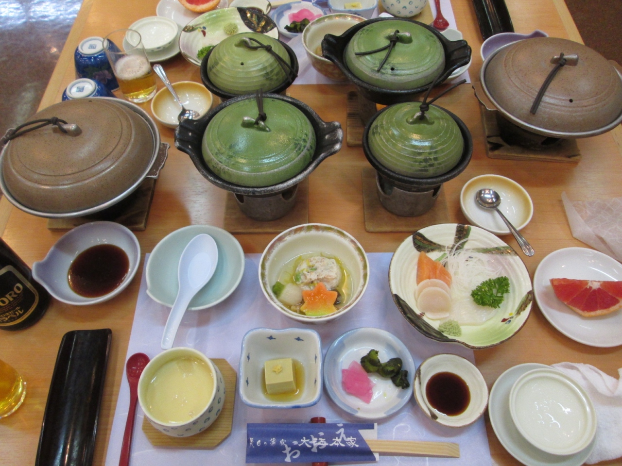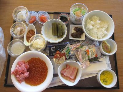 夕食は、お造り、薄味の寄せ鍋、ジンギスカン、ビーフシチューがメインの和食膳で、朝食は、まずまずの品数の和洋食のバイキングでした。- 旅行時期