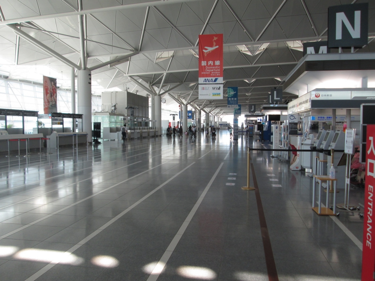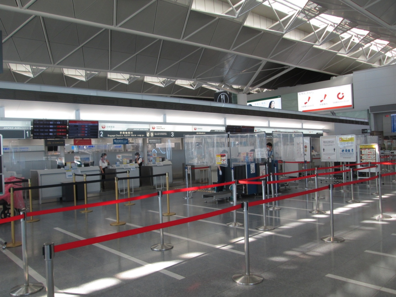新型コロナの影響で離発着便が大幅に減少したせいで、人影はまばらで全く活気がありません。