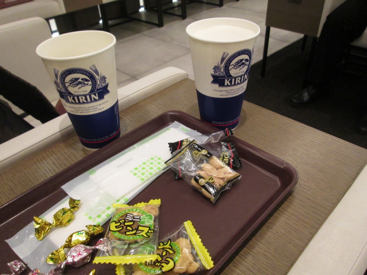 毎度チェックイン後、搭乗開始前までの時間をビールやおつまみを頂きながら過ごしています。