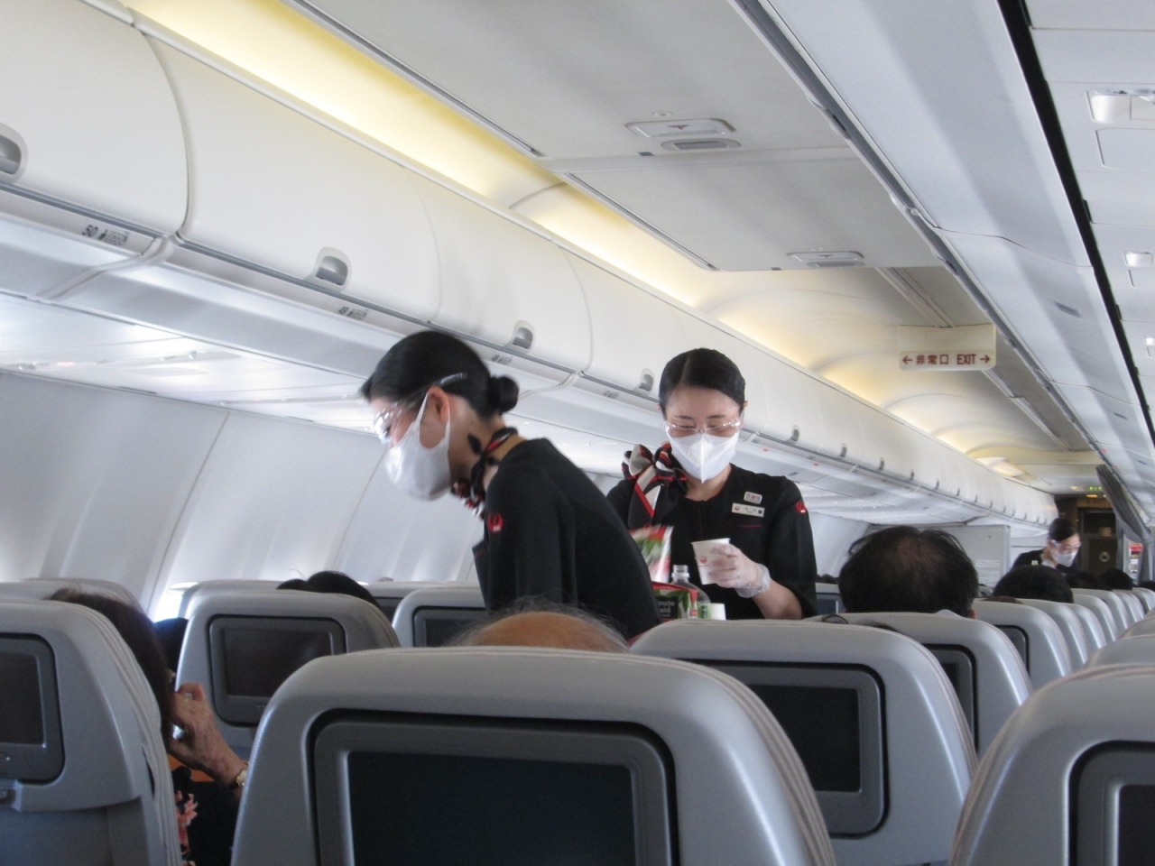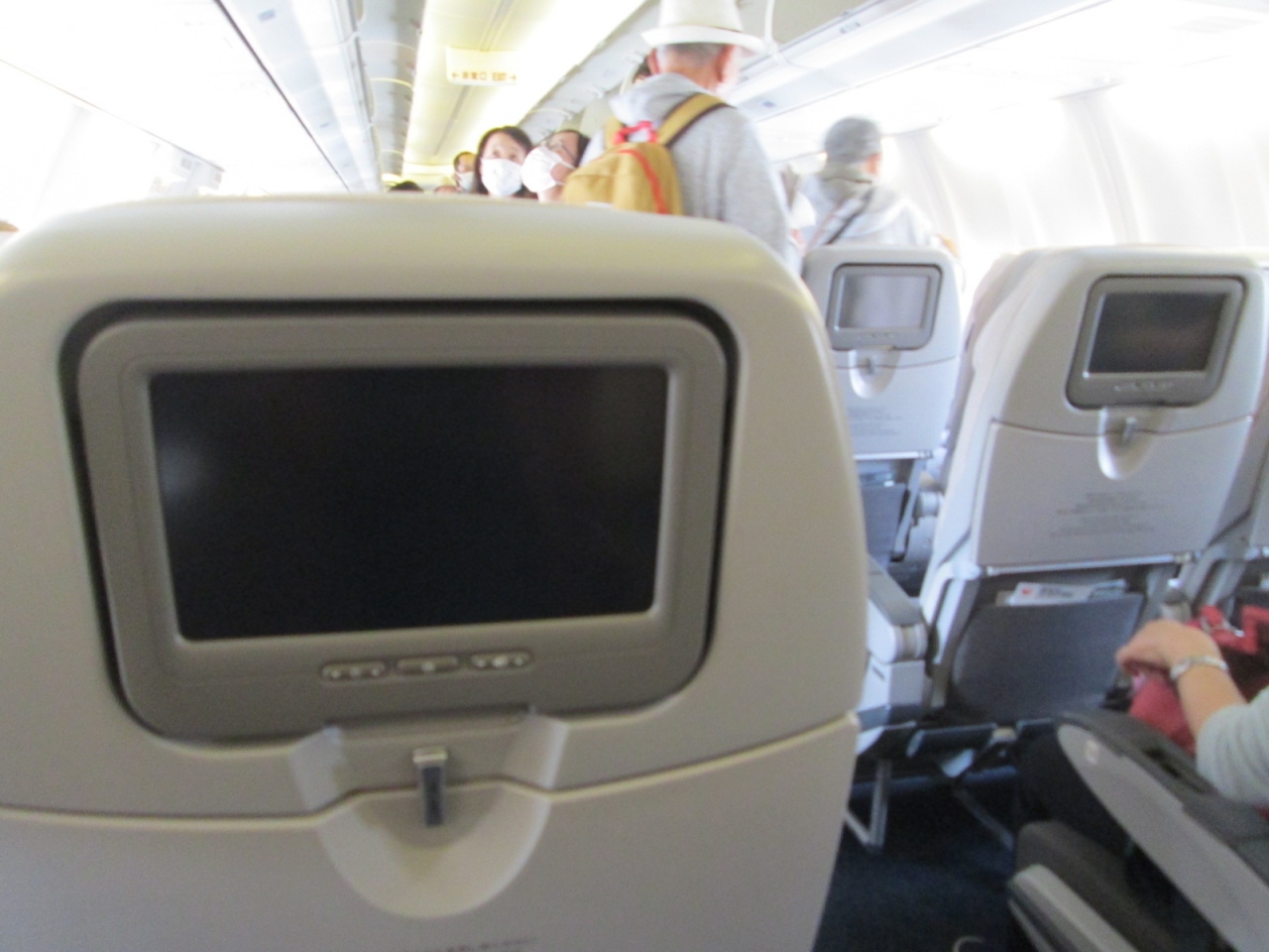 両便共に機内アナウンスで「国際線使用の機材のためモニターの視聴は出来ない」とのことで、非常に退屈な2時間余りのフライトでした。