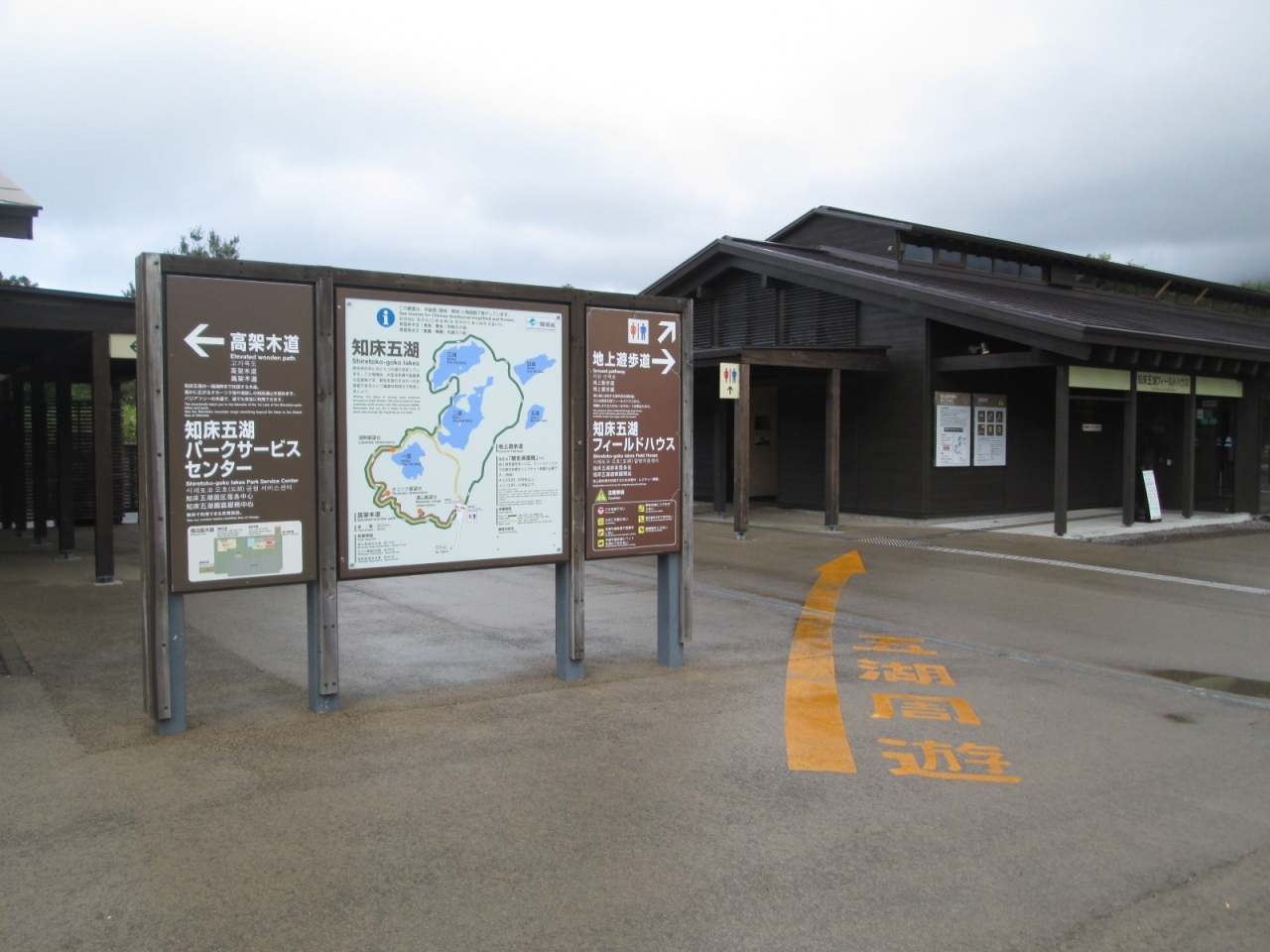 なお別棟のフィールドハウスでは、五湖全ての観光が出来る「地上遊歩道」の申込みが行われており、申込者はトレッキングスタイルなるもシューズは長靴姿でした。- 旅行時期