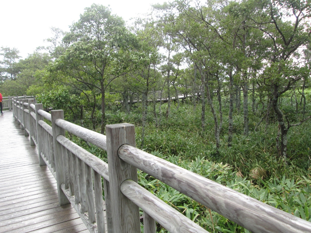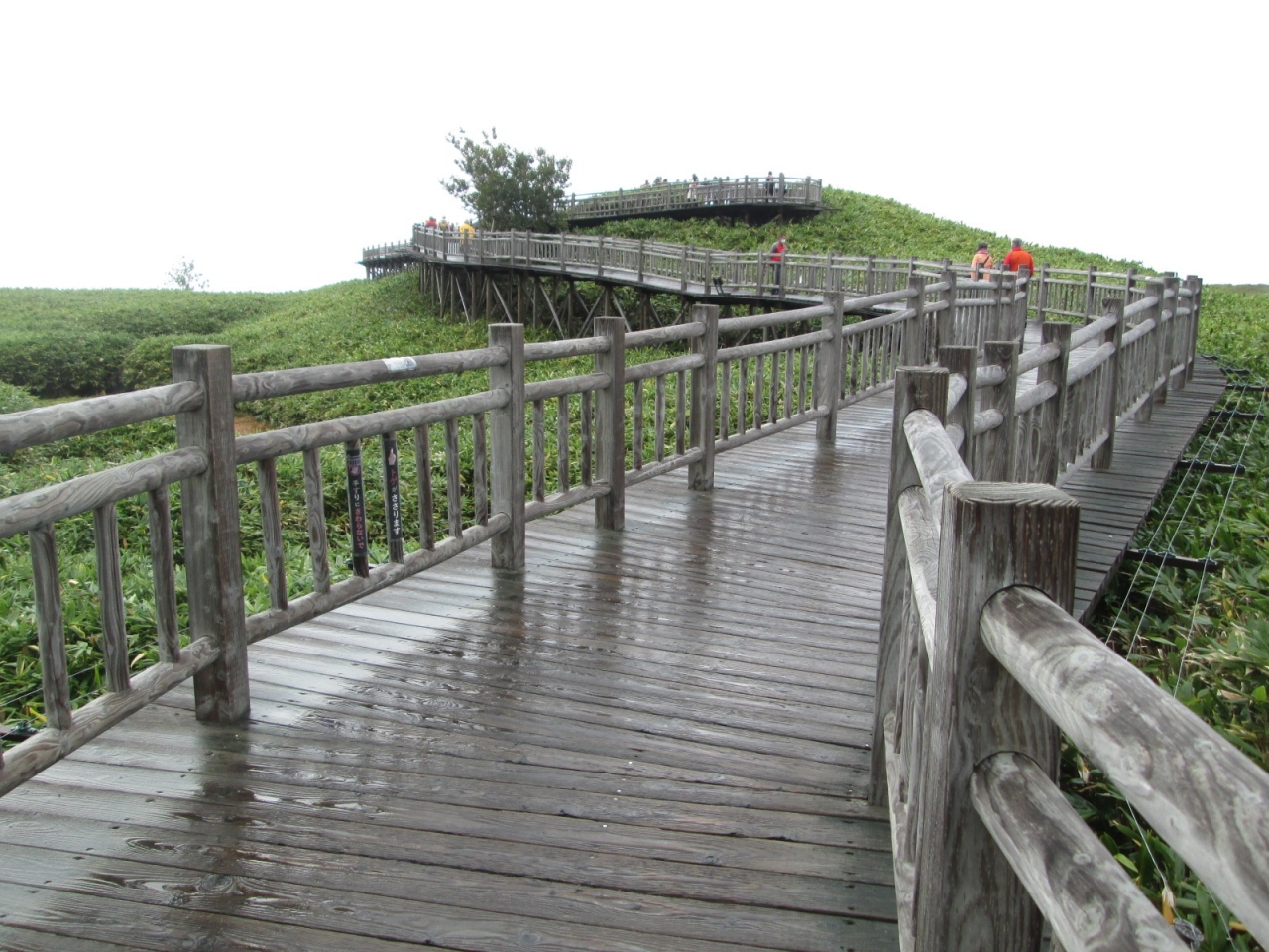 私達のツアーは、高架木道からの見学、訪問時は雨上がりの曇り空でした。