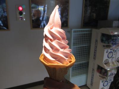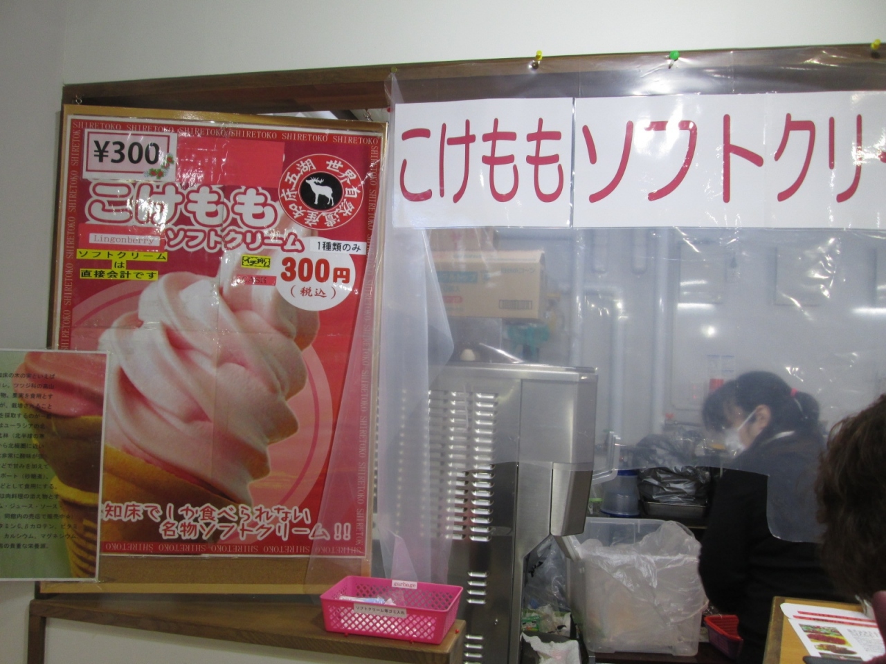 施設内は、休憩場とお土産ショップと軽食コーナーとなっており、知床でしか食べられない名物ソフトクリーム「こけももソフトクリーム」に魅かれ、つい購入。