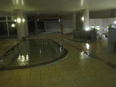 スパへは、大浴場内の出入口で湯あみ着(無料水着)を着て、屋上への螺旋階段を上がると、中央に大きなプール状の浴場と左右にジャグジーがあり、阿寒湖の景色や満天の星を眺めながら湯に浸る地上30mの展望大浴場と案内しています。