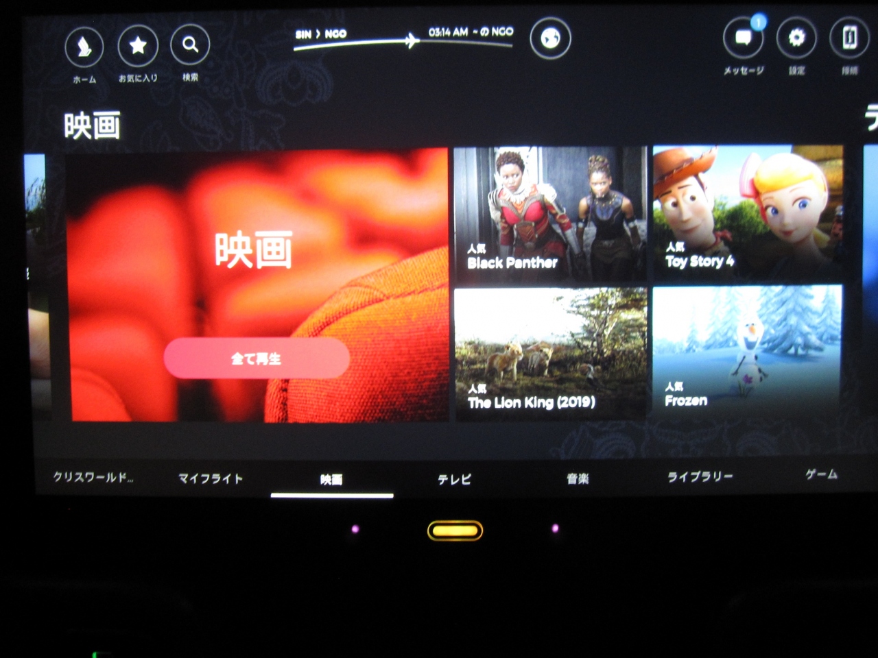 暫くしてカップに注がれたビールを頂き、モニターで映画を鑑賞しながら、うとうとと仮眠。