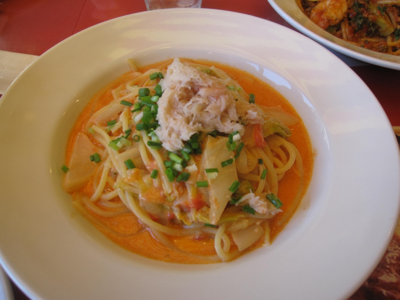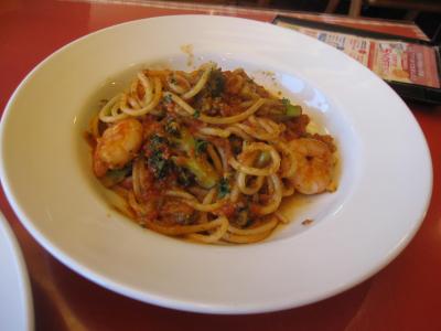 大府店では、店員さんが席まで大きなチーズを持って来て、パスタに削って入れてくれるパフォーマンスがありましたが、蟹江店はそれがありませんでした。