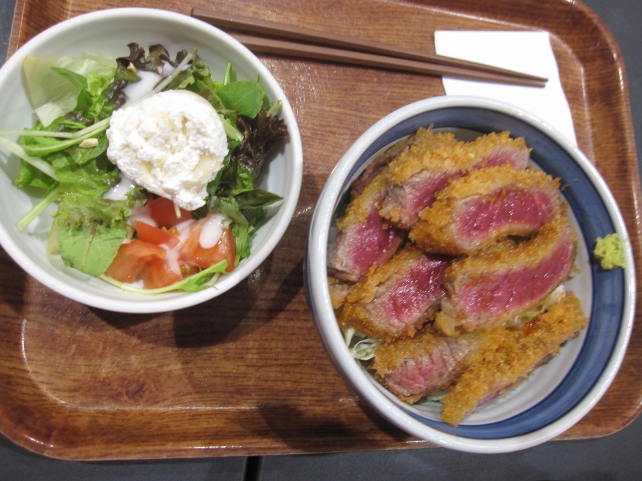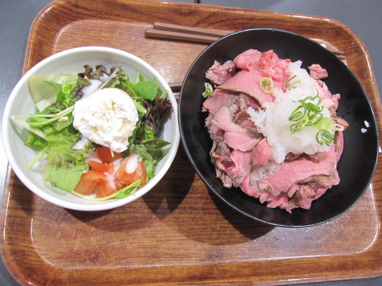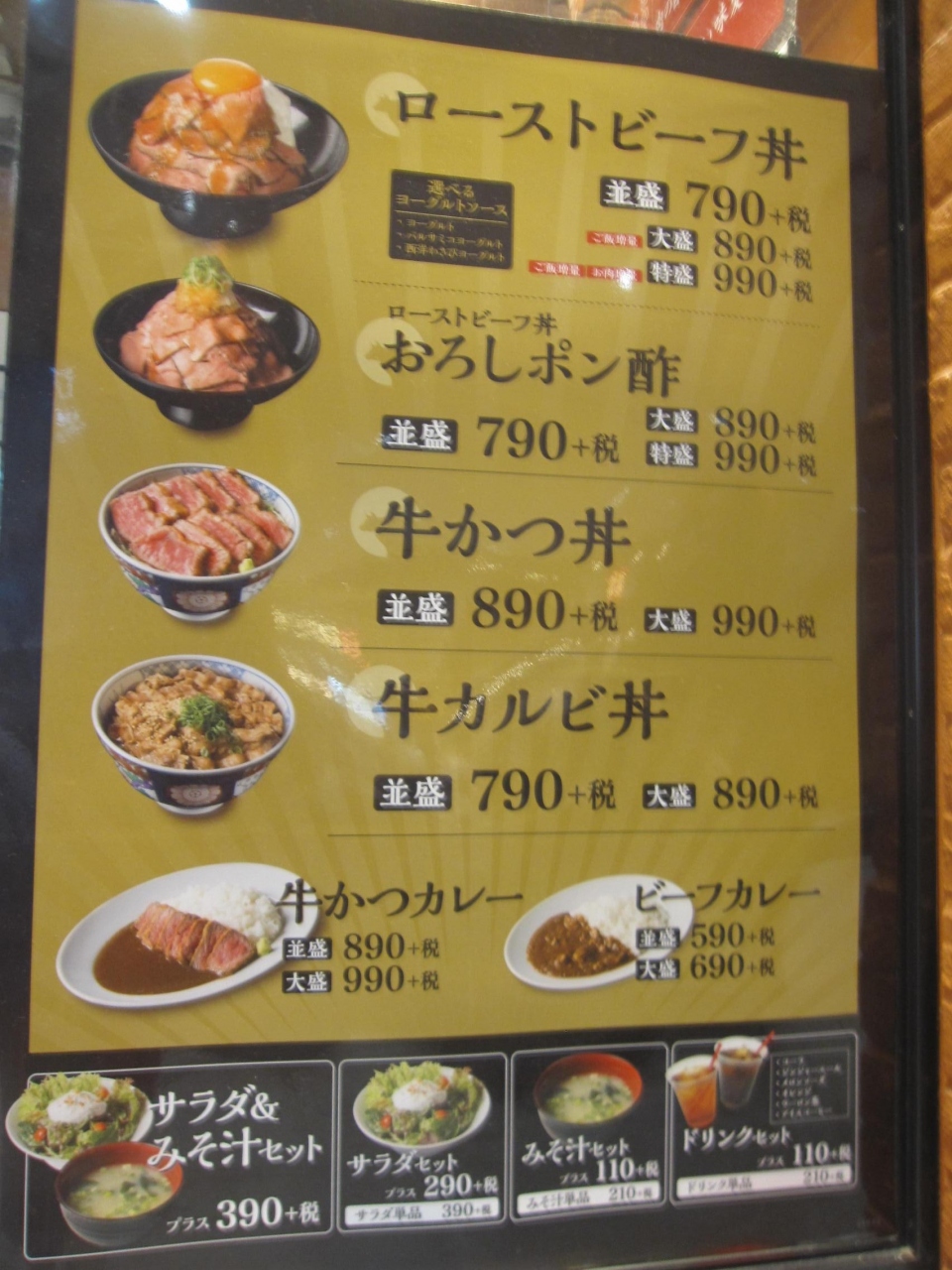 ローストビーフ星のカウンターに妻と並び、「ローストビーフ丼並盛」と「牛かつど丼並盛」を注文しました。