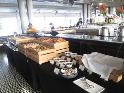 宿泊最終日、マリーナベイ・サンズ57階にあるインフィニティ・プールのプールサイドの開放感のあるレストランで朝食しました。